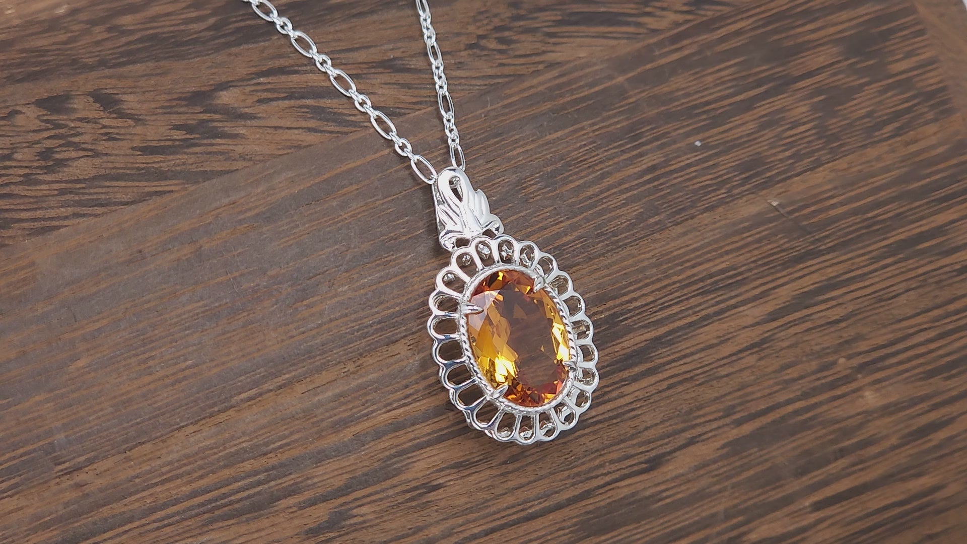 Oval Citrine Filigree Silver Pendant